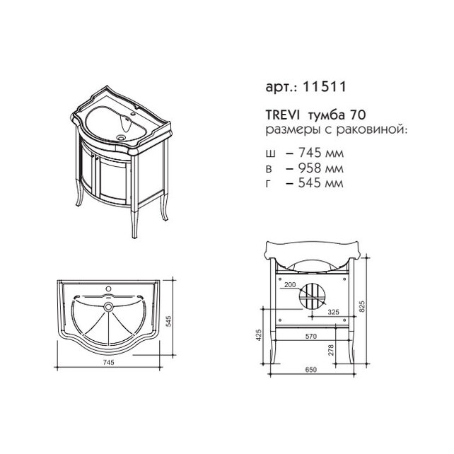 Модель TREVI 70см тумба+раковина